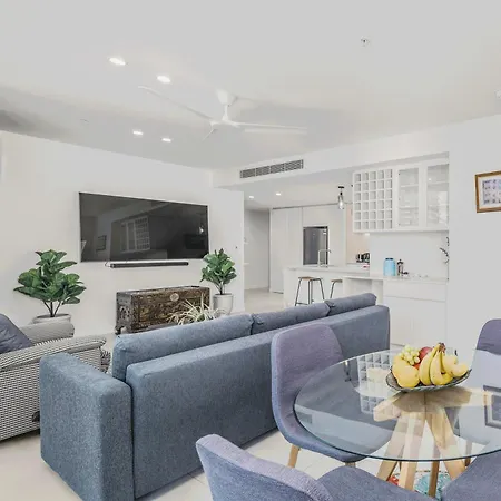 O apartamento fica perto de Estádio Cbus Super, que fica a cerca de 7 km de distância. Pode usar área para piquenique e jardim ou deliciar-se com banho turco, jacuzzi e sauna no local. The Cardamom Pod oferece cozinha saudável a cerca de 5 minutos a pé do apartamento. 2 Bedroom Ocean-Viewing Apartment é uma boa opção para ficar perto de The Oasis Shopping Centre.